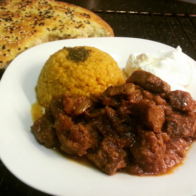 Vi spist brødet ved siden bulgur,tyrkisk kebab krydde og yoghurt,mmm det var kjempe godt 😉
