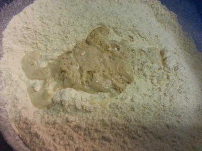 Tilsett gjærblandingen i bollen,bland alt sammen.