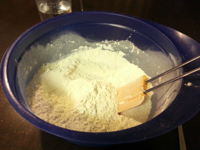 Tilsett vannet og rør deigen raskt sammen med en sleiv eller lignende.
