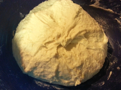 Ha deigen oppå bakepapiret og brett deigen ved hjelp av en slikkepott (jeg kunne ikke ta bildet ,det er klissete) Røter deigen 90 grader og brett en flik av deigen over.Gjenta bretteprosessen et par ganger.