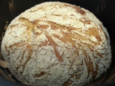Sett på lokket(rist litt forsiktig på gryta for å få brødet på plass) og stek på nederste rille i ca 25 minutter.